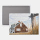En esta pintura de una cabaña quintessential de Nueva Inglaterra, una casa de playa desgastada por el clima se sienta pacíficamente bajo el sol de la mañana, sus ventanas blancas brillantes contra las tejas oscuras. La luz solar dorada y blanca enfatiza las sombras de fin de temporada en la hierba seca de otoño y la vieja cerca de madera en el primer plano. Un paisaje celestial turbulento muestra la niebla del océano quemándose para revelar cielos azules pálidos.