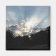 Inspirador imán fotográfico de amanecer. Los majestuosos rayos solares están alcanzando su punto máximo a través de las nubes. Una idea de regalo divertida también.