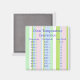 Este imán es bonito y útil. El conjunto está decorado con rayas pastel en tonos rosa, verde, azul y blanco. Hay una conversión de temperatura de Fahrenheit a Centigrade a Mark de gas y de nuevo. ¡Perfecto para cualquiera que tenga un libro de cocina de un país diferente o alguien que se haya mudado a otro país!