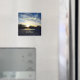 Imán inspirador de citas: "Disfruta de la vida, un momento a la vez" con un hermoso fondo de amanecer. Una decoración inspiradora, bonita y divertida.