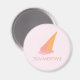 Magnate con diseño de helado fresco para los días de verano. El diseño consiste en un cono de helado boca abajo, helado de color rosa y texto Summertime que se puede personalizar. El diseño es personalizable y se puede cambiar el color del fondo.