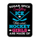 Imán flexible de temas de hockey para el chica de hockey con polla de hockey y palos con texto de blanco, rosa y azul que lee Azúcar, especias y todo el hielo de que están hechos los Chicas de hockey.