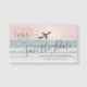Boda de destino de playa ahorra la fecha pequeño imán pequeño (el tamaño de una tarjeta de visita) con un logo de monograma de aeroplano cardíaco personalizado sobre una lujosa puesta de sol rosa en una playa de arena con olas oceánicas y diseño de tipo moderno. Haga clic en "Personalizar posterior" para editar el diseño de forma avanzada, como cambiar el color del texto, el tipo de letra y la posición, y el color del avión. Contáctame para coordinar los elementos que estás buscando, o usa el "transferir este diseño" para crear el tuyo en cualquier elemento de Zazzle.