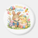 Celebra la temporada con este adorable imán de Pascua que presenta un conejo alegre y un pollito rodeados de huevos coloridos, flores y zanahorias. El diseño juguetón de “Feliz Pascua” añade un toque festivo a tu nevera, oficina o cualquier superficie magnética. Perfecto como regalo de primavera, favor de fiesta o decoración de vacaciones