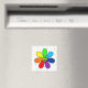 Una flor feliz con pétalos de arcoiris sobre un fondo colorido y puntiagudo.