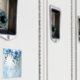 Imán de flores azules y perlas
