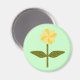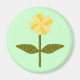 Este imán presenta una imagen digital de una margarita con un tallo verde con dos hojas verdes sobre ella y pétalos de color amarillo claro y oscuro. Este es un diseño simple pero hermoso. El fondo es de un color verde césped pálido.