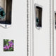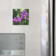 Foto de una flor tropical púrpura en un imán de Trevor Star.