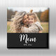 Regalo de foto con elegante tipografía negra minimalista de mamá con el año de establecimiento. Celebre a las mamás y futuras mamás en el día de la madre con este diseño de imán simple pero elegante que muestra la palabra “Mamá” en texto de escritura juguetona para un ambiente alegre, y espacio para personalizar con un “Año de establecimiento” debajo. También puedes cambiar "mamá" por mami, madre, mama o cualquier nombre que prefieras usar.