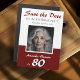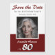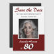 Tarjeta de imán de foto para fiesta de cumpleaños número 80 para guardar la fecha con una foto personalizada - agregue su foto y personalícela con su información. La tarjeta es de color rojo oscuro con letra script de moda.