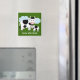 Un bonito imán de frigorífico que muestra a una vaca madre y su ternera junto con el texto "¡Buenos días!". Este producto se puede personalizar cambiando el color de fondo y/o el texto.