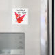 Imán cuadrado de frigorífico blanco con un diseño de collage de papel pintado a mano de dragón rojo y el lema 'Cymru am Byth'. Ver también posters, tazas, mousepads, tarjetas de felicitación, camisetas, etc. que coincidan