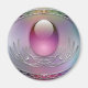 Diseño azul pastel, lavanda y rosa con un huevo rosa translúcido en un entorno de fibra de plata, rodeado por un marco ovalado de plata clara y cuatro gemas más lisas como huevos de colores.