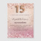 Un imán de invitación moderno, elegante y glamuroso para un chica de Quinceañera, 15 cumpleaños. Un fondo de gradiente dorado y rosa de color rosa, polvo purpurina. El nombre está escrito con un guión moderno de estilo con letras de color rosa oscuro y dorado. Personalice y agregue los detalles de su fiesta. El número 15 se escribe con un tipo de letra, guión.