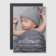 Esta tarjeta magnética de anuncios de fotos con encanto presenta un diseño contemporáneo que se personaliza fácilmente con la foto, los detalles y el mensaje de tu bebé. Junto con el formato fotográfico completo, hemos hecho de "bienvenido" el enfoque, presentado en funda inferior un guión moderno que es a la vez ordenado y legible pero también expresivo, cálido y familiar. El guión de "bienvenida" y el otro texto en la parte delantera de la tarjeta son blancos y nítidos. Puede cambiar el color y el tipo de letra de este u otro texto según su gusto, y le invitamos a jugar con estos elementos. Por ejemplo, la parte "bienvenido" del diseño se puede cambiar por otra, como "presentar" o "hola, mundo", etc. Y siempre puede cambiar el tamaño del texto si su propia versión es demasiado larga para que se ajuste al espacio Si prefiere una apariencia más minimalista, puede borrar sin reemplazar ninguna de nuestras estadísticas de ejemplo - puede que no desee incluir la hora del día o la longitud, por ejemplo. Usa las herramientas de diseño intuitivo, tu foto favorita y tu inspiración para personalizar esta tarjeta magnética de anuncios de nacimiento de personalizados y hacerla única tuya. ¡Y revisa nuestra tienda para ver las versiones de postales y tarjetas planas de este diseño!