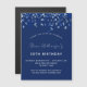 Un imán moderno, elegante y de invitación. Un fondo azul marino decorado con un confeti azul. Personalice y agregue un nombre y detalles. Texto blanco.