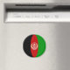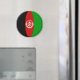 La bandera del Afganistán se ha ajustado cuidadosamente a la forma circular de este imán. Una manera decorativa de promover la cultura afgana.