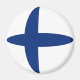 La bandera de Finlandia se ha ajustado cuidadosamente a la forma circular de este imán. Una forma decorativa de promover la cultura finlandesa.