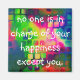 El imán de alentar la felicidad se hace en un abstracto de color arcoiris mientras lee" nadie está a cargo de tu felicidad excepto tú".