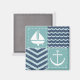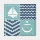 Un tejido inspirado en las plazas turquesas tormentosas, adornado con un velero y un ancla blancos, y cuadrados azul marino profundos, acentuados por cantos y olas azul claro, se acentúa con puntas blancas para crear un ambiente náutico clásico.