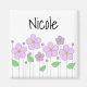 Un imán cuadrado con flores de lila y nombre. Personalizar el imán con su nombre o texto especial, color de fondo, entre otras opciones.