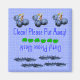 El imán del lavavajillas tiene una hilera de arándanos machacados con las palabras "¡Sucio! ¡Por favor, lava!" en un borde, y dímelo y tiene una hilera de arándanos frescos y limpios con las palabras "¡Limpia! ¡Por favor, aléjate!" en el borde opuesto. Tiene una fila de hojas en el medio como divisor. El fondo es un patrón de cuadros muy pequeño en azul y blanco.