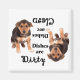 Este imán de lavavajillas presenta un adorable cachorro de pastor alemán con un texto que dice: "Los platos están sucios". Ponga este imán boca abajo y la misma imagen aparece con este texto: "Los platos están limpios". ¡Genial para ese amante de los animales en tu vida! Este diseño está protegido por derechos de autor y no puede copiarse ni redistribuirse. Para consultas sobre este u otros diseños de esta tienda, o si necesita ayuda para la personalización, utilice la función de envío de mensajes adjunta a esta tienda y estaremos encantados de asistirle