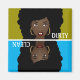 Este diseño presenta a una mujer en el lado sucio con un aullido, en el lado limpio una sonrisa agradable. Ella tiene un afro lleno y labios rojos.