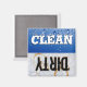 Limpio y único imán de cocina de lavavajillas limpio y sucio con burbujas brillantes azules con la palabra "LIMPIO" en texto blanco en una mitad y una servilleta manchada de café es el fondo con la palabra "Sucio" en texto negro grueso en la otra mitad. ¡Una buena idea de regalo para la diosa doméstica de su cocina! La solución divertida es cuándo cargar y cuándo vaciar la lavadora de platos.