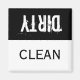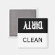 Imán de lavavajillas limpios/sucios en blanco y negro 2x2.
