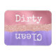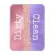 Magnate de lavavajillas ondulados de color, hecho con gráficos de un Relieve metalizado rosado y Relieve metalizado púrpura, con un purpurina falso rosa entre ellos. El texto blanco grande dice Sucio y Limpio.