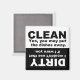 Magnate para colocar en la parte delantera del lavavajillas para recordar si los platos están limpios o sucios. CLEAN - Sí, puedes guardar los platos. MALDITO - No lo usaría si fuera tú.