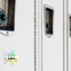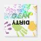 Manos rojas, verdes, amarillas con burbujas verdes, amarillas, rojas, hacen un bonito y sucio imán de lavavajillas limpio.