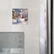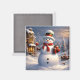 Se muestra el imán con una impresión artística de un muñeco de nieve navideño.