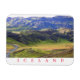 Una hermosa vista del paisaje escarpado en Islandia impresa en un imán de recuerdo para refrigeradores.
