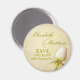 Bello imán de rosa blanca soltera en papel con efecto rústico moderno y paisaje para guardar la fecha de la boda. Edite este imán con sus propias palabras y detalles de la boda. Perfecto para que los invitados lo tengan en la nevera y les recuerde su boda. Diseño y fotografía de Sarah Trett.