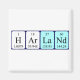 Harland se describió como H Ar La Nd (Hydrogen Argon Lanthanum Neodymium) en un imán para el científico en usted.