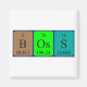 Boss escrito como B Os S (Azufre Boron Osmium) en un imán para el científico en ti. <br />Encontrar más productos de nombres de tabla periódicos en<a href="http://mipdatabase.com/products/">mipdatabase.com</a>! ¿No puedes encontrar lo que quieres? A continuación, dígame qué le gustaría en la página<a href="http://www.mipdatabase.com/products/request.php">solicitar un producto ().