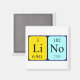 Lino escrito como Li No (Lithium Nobelium) en un imán para el científico en usted.