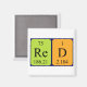 Rojo escrito como Re D (Rhenium Deuterium) en un imán para el científico en usted.