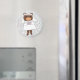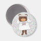Un oso marrón vestido de novia, listo para su boda, sostiene un ramo de flores rosas sobre un fondo morado multicolor en un imán