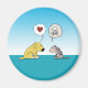 Este lindo imán cuenta con un perro y un gato que tienen opiniones diferentes entre sí.