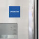 Imán de personalizable blanco azul vacunado, signo. Minimalista estilo sencillo y elegante. azul y blanco