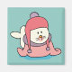 Sello de bebé lindo con personalizado de casquillo de invierno con imán de fondo azul. Ideal como regalo de oficina para Navidades y el favor de la ducha para bebés entre otras ocasiones.