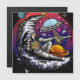 Arte vectorial original de un astronauta que tiene queso de luna y pasa una tajada a un alien. Creado en vector.