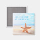 Este imán se muestra con una hermosa foto de estrella de playa. El texto dice que la vida es mejor en la playa. Personalizar este imán o compra como está. Imagen de stock freepik.com