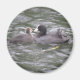 Este imán muestra una fotografía de un Coot alimentando a un pez con su hambrienta polluelo. El pájaro adulto tiene un parche blanco en la parte superior de la cabeza y un ojo rojo, mientras que la pequeña y tierna chica es suave y gris.