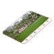 Bonitas vistas a las cabañas de piedra de Arlington Row en el pueblo de Bibury en los Cotswolds de Inglaterra impresos en un imán de recuerdo para nevera.