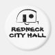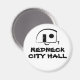 Un avance con las palabras ayuntamiento hace un imán de frigorífico de cuello rojo