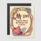 Esta encantadora tarjeta de San Valentín victoriana es completamente personalizable para un mensaje romántico y único para tu verdadero amor. El marco ovalado cuenta con filigrana dorada, lilas y un corazón antiguo. Cintas de color rosa suave adornan juguetonamente el marco y un rectángulo redondeado de color pervinca lo destaca sobre un fondo blanco antiguo.